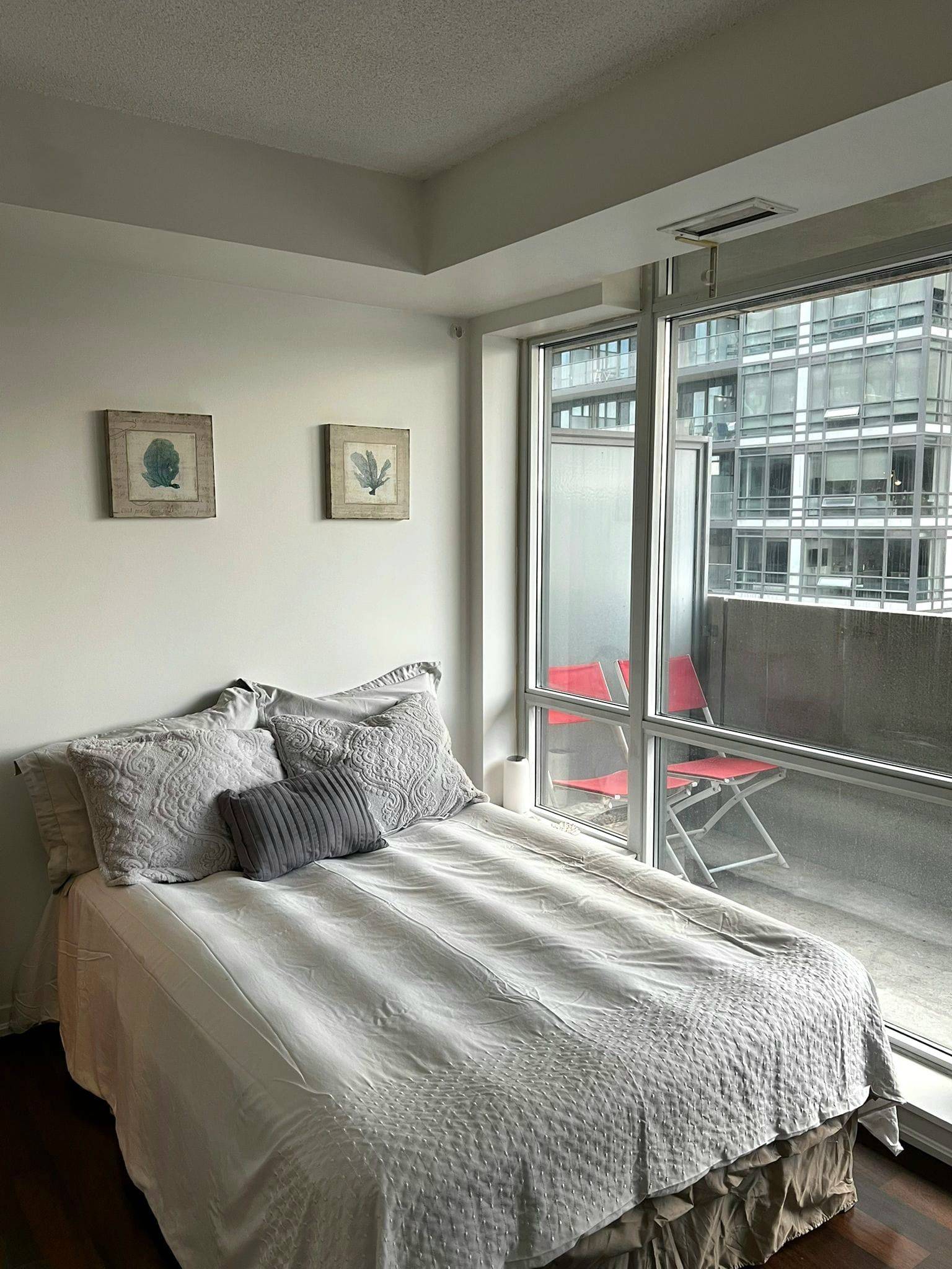 Welcome to Fuzion Condos! This exceptional 829 sq. ft. southeast corner unit offers one of the building's most sought-after split-plan layouts, framed by floor-to-ceiling windows that showcase unobstructed, breathtaking views of the CN Tower, Lake Ontario, and BMO Field. The interior is truly move-in ready, featuring fresh paint throughout, brand-new toilets, and updated bathroom vanities. The spacious primary bedroom includes a walk-in closet and a private 4-piece ensuite, while the second bedroom offers a full-sized closet and direct balcony access. This unit comes complete with one parking spot and one locker. Residents enjoy amenities including a gym, party room, and rooftop deck, all while being steps from the vibrant shops and dining of both Liberty Village and King West. With the King Streetcar at your doorstep and easy access to the Gardiner Expressway, this suite perfectly blends functional design with a prime downtown location. Come see today!